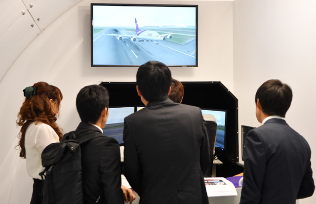 タイ国際航空(THA/TG)は、エアバスA380型機をイメージした、フライトシミュレーターなどを出展している。ブースは東1ホールA-07。