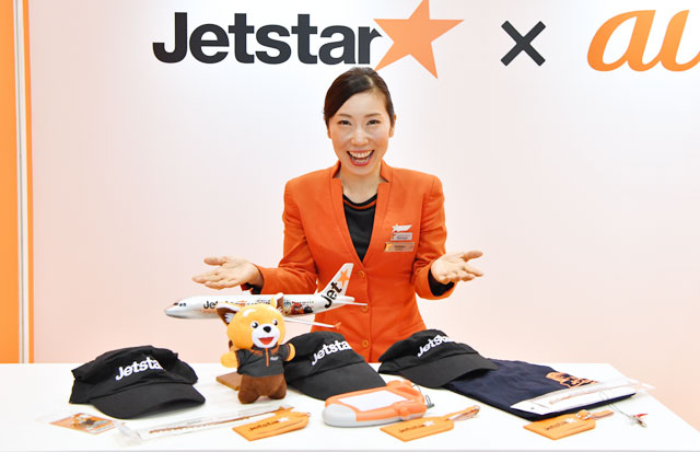 ジェットスター・ジャパン(JJP/GK)は大型のスマートフォン模型などを展示。スマートフォン対応をアピールし、一般公開日の24日と25日は1000円と2000円、3000円の福袋や、現在タイアップしている映画『アングリーバード』のグッズが当たるコーナーなどを設けている。