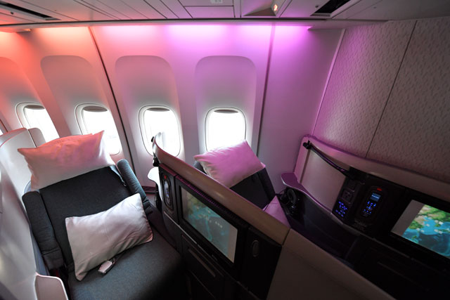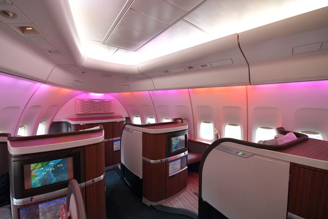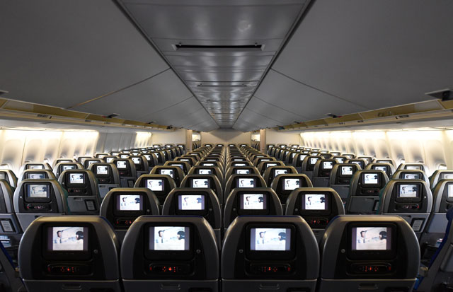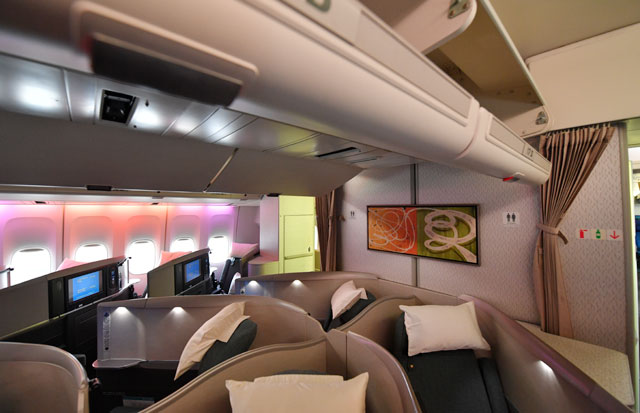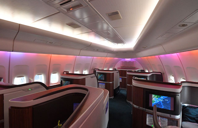 座席配列はファーストが1席-1席が4列と中央1席、ビジネスはメインデッキが1席-2席-1席、アッパーデッキが1席-1席、プレミアムエコノミーが2席-4席-2席、エコノミーが3席-4席-3席となっている。