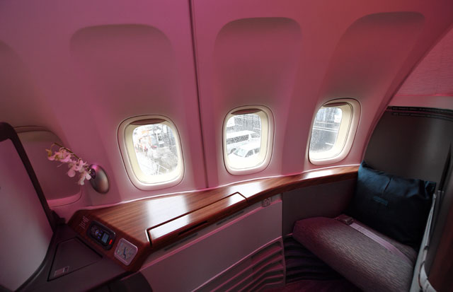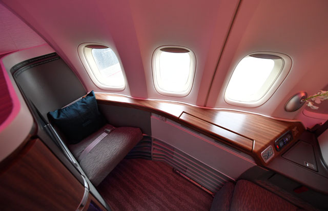 キャセイパシフィック航空の747-400のファーストクラス=16年10月1日 PHOTO: Tadayuki YOSHIKAWA/Aviation Wire