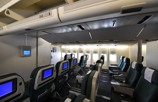 キャセイパシフィック航空の747-400のプレミアムエコノミークラス=16年10月1日 PHOTO: Tadayuki YOSHIKAWA/Aviation Wire