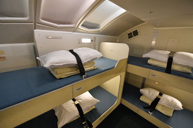 メインデッキの最後部はラバトリーで、近くには客室乗務員用の休憩室が設けられていた。