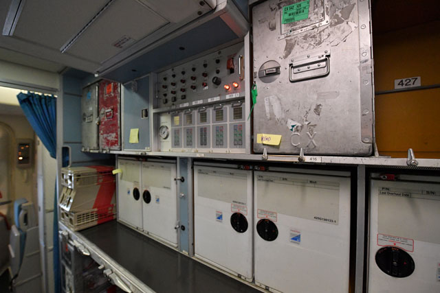 キャセイパシフィック航空の747-400のギャレー=16年10月1日 PHOTO: Tadayuki YOSHIKAWA/Aviation Wire