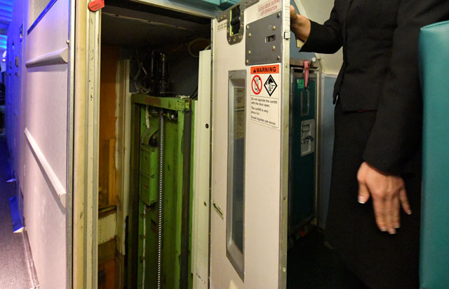 2階席ギャレーにあるカートを運ぶエレベーター=16年10月1日 PHOTO: Tadayuki YOSHIKAWA/Aviation Wire