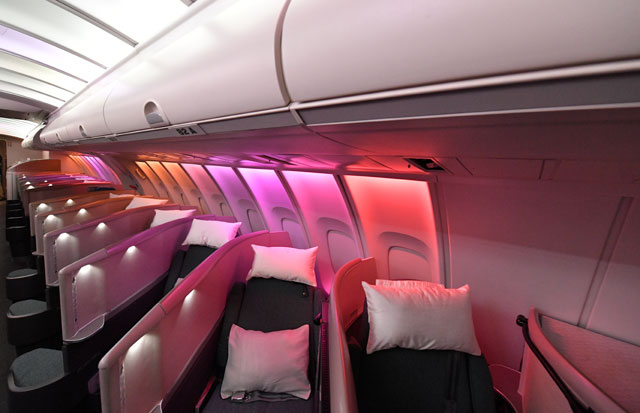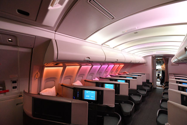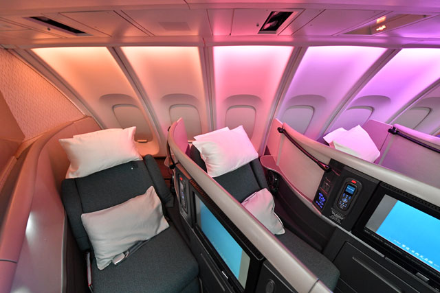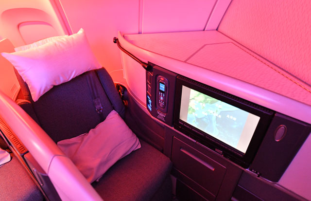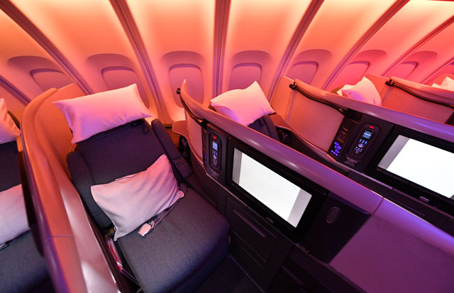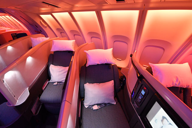 キャセイパシフィック航空の747-400の2階席ビジネスクラス=16年10月1日 PHOTO: Tadayuki YOSHIKAWA/Aviation Wire
