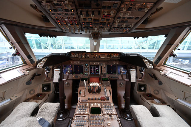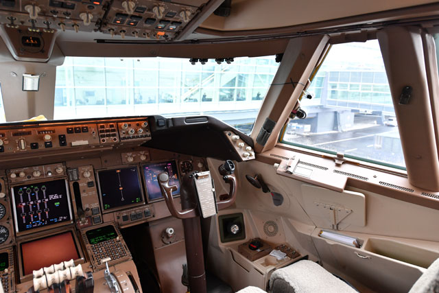 キャセイパシフィック航空の747-400のコックピット副操縦士席側=16年10月1日 PHOTO: Tadayuki YOSHIKAWA/Aviation Wire