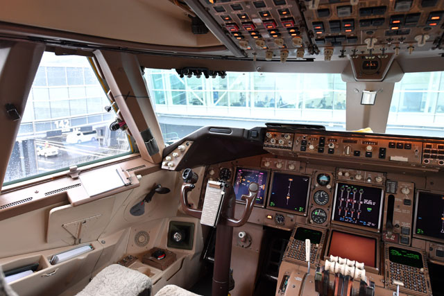 キャセイパシフィック航空の747-400のコックピット機長席側=16年10月1日 PHOTO: Tadayuki YOSHIKAWA/Aviation Wire