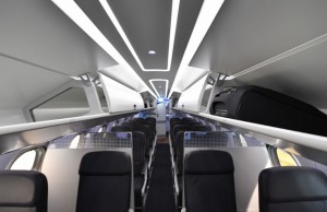 MRJの機体構造を見ていくと、客室の快適性が燃費の良さと並ぶ売りだ。E2シリーズの機体サイズは既存機「Eシリーズ」と変わらない。客室の高さはE2の200センチに対してMRJは203センチと、少し頭上に余裕がある。
