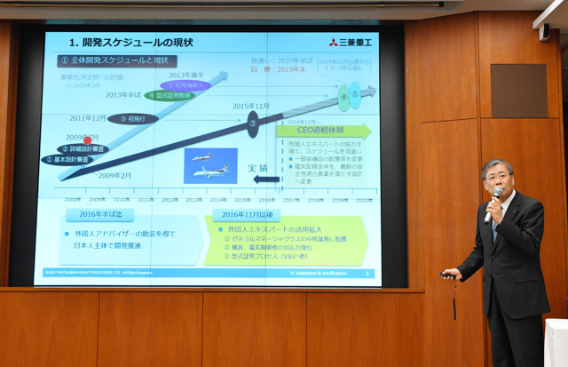「今回骨身にしみたのは、開発前の情報収集やリスク分析について、もう少し勉強すべきだった」。宮永社長は、2008年の開発決定からこれまでの進捗をこう振り返った。そして今回示した納入延期は、MRJ90の引き渡し開始から1年後にMRJ70を投入することまでを織り込んだスケジュールだと説明した。