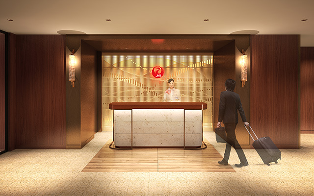 リニューアルするJALの那覇空港国内線サクララウンジのエントランス(イメージ、同社提供)