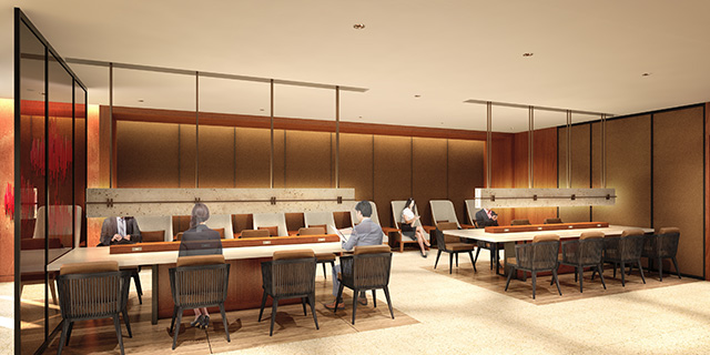 リニューアルするJALの那覇空港国内線サクララウンジのダイニング(イメージ、同社提供)