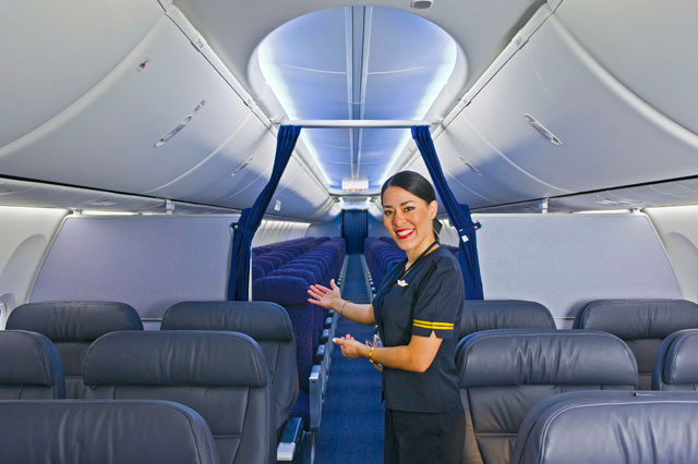 スカイ・インテリアを採用した737の機内(ボーイング提供)