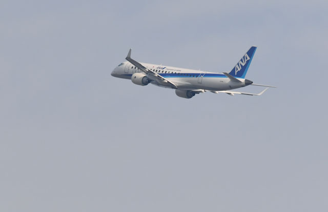 パリ航空ショー初出展を終えル・ブルジェ空港を離陸するANA塗装を施したMRJの飛行試験3号機=17年6月22日 PHOTO: Tadayuki YOSHIKAWA/Aviation Wire
