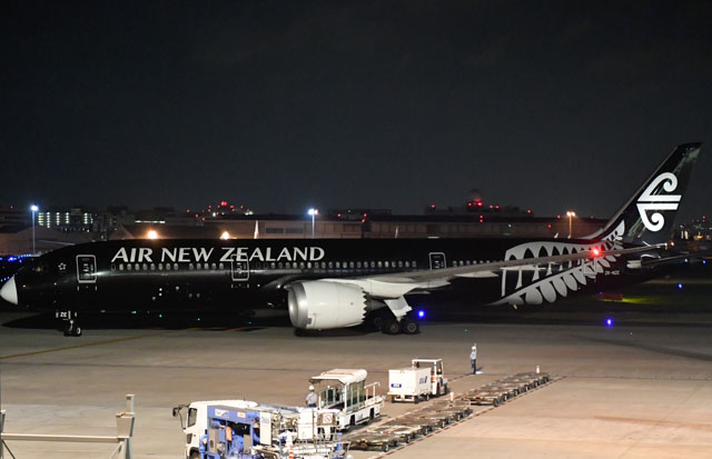 ニュージーランド航空、関西-オークランド再開 初便は黒い787初号機(16年11月7日)