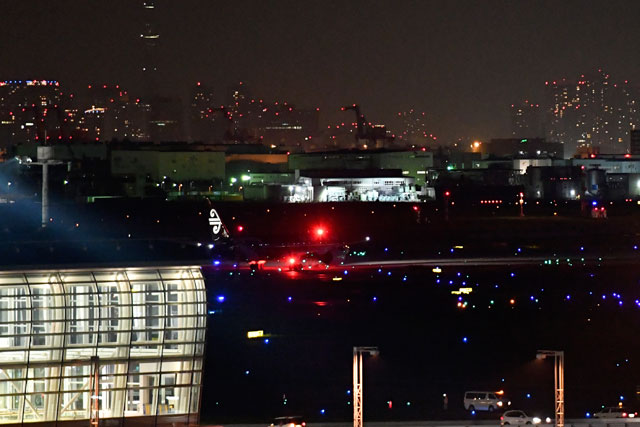 21日の初便は、NZ91便のオークランド出発が50分近く遅れたことから、羽田到着は定刻より32分遅れの午後11時32分。D滑走路(RWY23)に着陸し、148番スポット(駐機場)に入った。