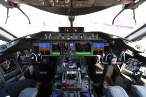 パリ航空ショーにボーイングが出展した787-10のコックピット=17年6月18日 PHOTO: Tadayuki YOSHIKAWA/Aviation Wire