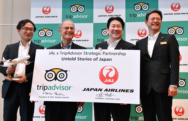 提携の狙いについて、JALの植木義晴社長は「これまでは世界への発信力が不十分だった。トリップアドバイザーでは、日本に興味がない人にも発信できる」と狙いを語った。
