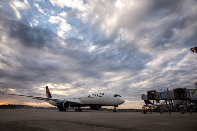 デルタ航空のA350初号機、アトランタ到着 10月から成田就航(17年8月9日)
