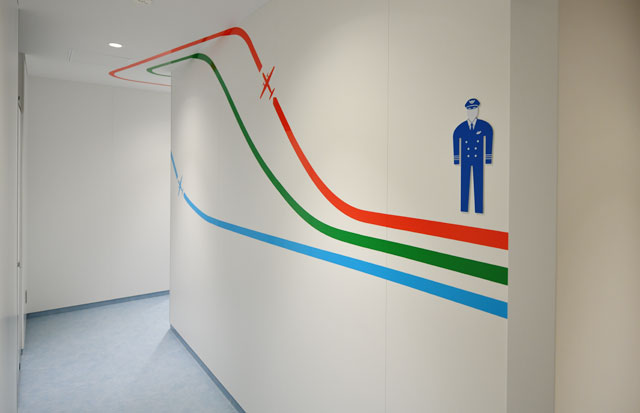 パイロットや航空機をイメージしたあいち航空ミュージアムのサイエンスラボの男性用トイレ入口=17年11月20日 PHOTO: Tadayuki YOSHIKAWA/Aviation Wire
