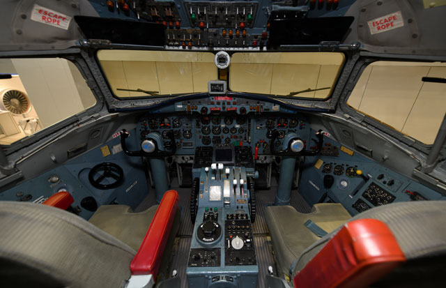 あいち航空ミュージアムに展示されている元航空自衛隊の要人輸送用YS-11 52-1152号機のコックピット=17年11月20日 PHOTO: Tadayuki YOSHIKAWA/Aviation Wire
