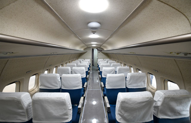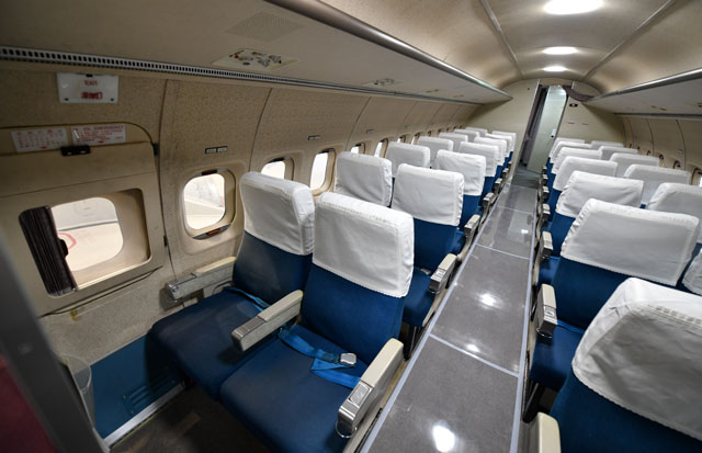 あいち航空ミュージアムに展示されている元航空自衛隊の要人輸送用YS-11 52-1152号機の機内=17年11月20日 PHOTO: Tadayuki YOSHIKAWA/Aviation Wire