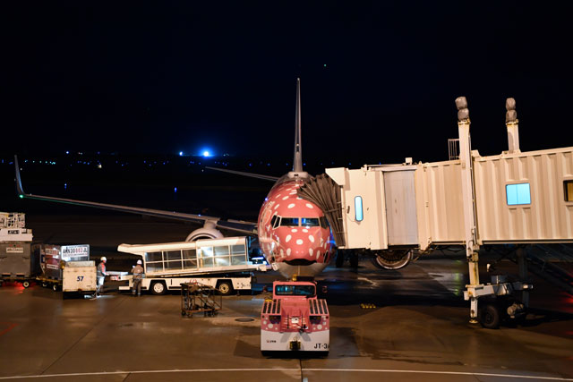 那覇空港で出発を待つJTAの新さくらジンベエ初便=18年2月1日 PHOTO: Tadayuki YOSHIKAWA/Aviation Wire