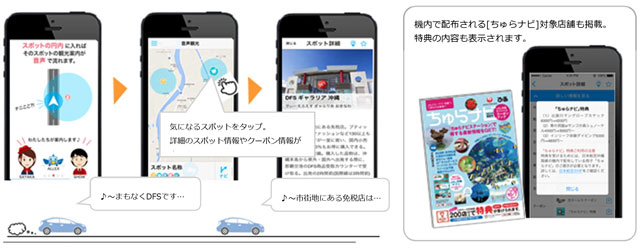 トヨタが開発したのは、音声案内でドライブしながらクーポン情報を取得するアプリ「GAZOO(ガズー)ドライブコンシェルジュ“ナニここ”」。同アプリ内に、JAL沖縄クーポンブック「ちゅらナビ」の情報が提供される。