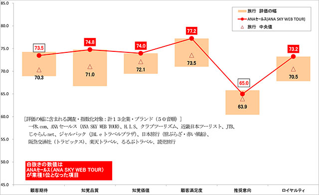 旅行業種の評価幅とANAセールスの評価値(JCSIの資料から)