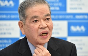 14年4-9月期決算を説明するNAAの夏目社長=11月14日 PHOTO: Tadayuki YOSHIKAWA/Aviation Wire