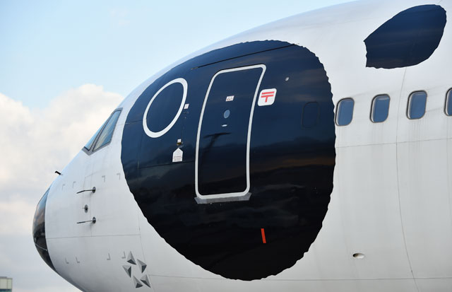 パンダの顔が描かれた前部胴体=12月5日 PHOTO: Tadayuki YOSHIKAWA/Aviation Wire