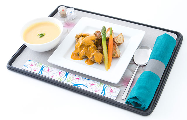 ビジネスで提供する「牛肉のカレカレ」(ハワイアン航空提供)