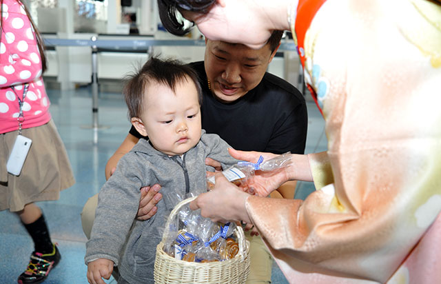 小さな訪日客もチョコをゲット=3月20日 PHOTO: Yusuke KOHASE/Aviation Wire