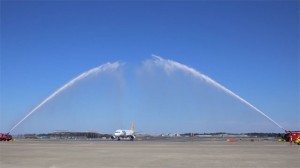 セブから到着するセブパシフィック航空の成田初便(同社資料から)