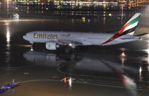 世界最長の飛行時間となるドバイ-パナマシティ線の運航を開始するエミレーツ航空=14年3月 PHOTO: Tadayuki YOSHIKAWA/Aviation Wire