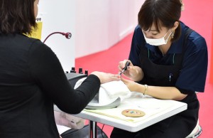 ブースでは旅行案内のほか、ネイルアート体験も実施。爪に同社のロゴを描く。