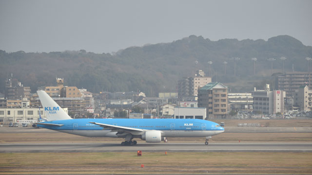 福岡空港を離陸するKLMの福岡発最終KL870便(すべてガラス越しで撮影)=1月4日 PHOTO: Tadayuki YOSHIKAWA/Aviation Wire