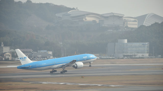 福岡空港を離陸するKLMの福岡発最終KL870便=1月4日 PHOTO: Tadayuki YOSHIKAWA/Aviation Wire