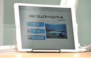 全日本空輸(ANA/NH)は4月21日、羽田空港国内線第2ターミナルで、タブレット端末を使用した手話通訳サービスを導入した。従来の筆談ボードを使用する方法と比べ、即時性のある対応が可能となった。