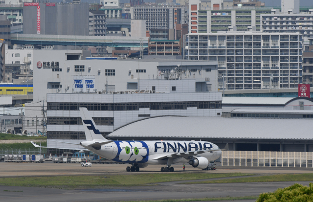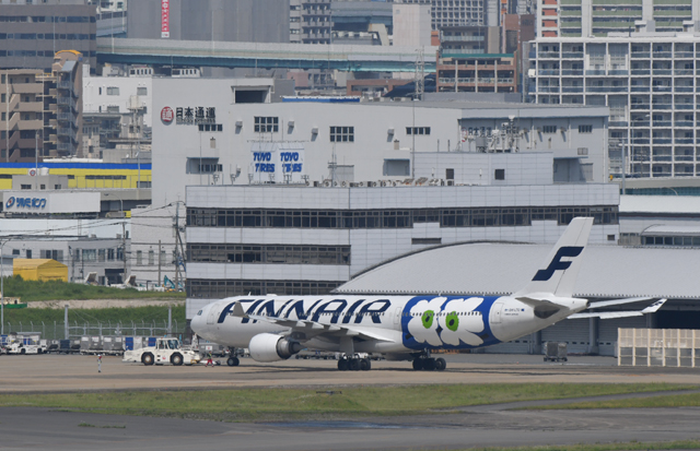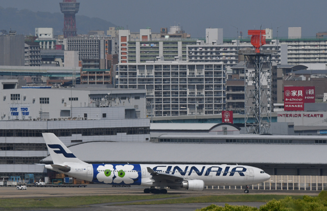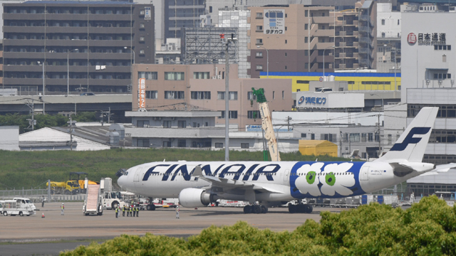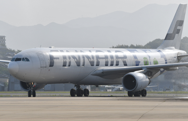 福岡空港の駐機場へ向かうフィンエアーの福岡行き初便AY75便=16年5月8日 PHOTO: Tadayuki YOSHIKAWA/Aviation Wire