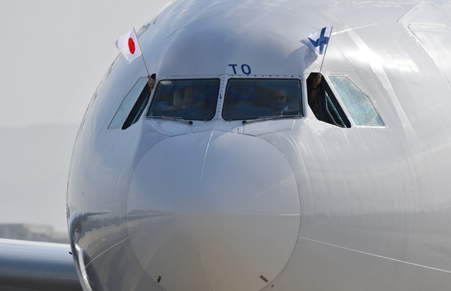 折り返しの福岡発初便のAY76便は、乗客241人と乗員13人の254人を乗せ、午前9時49分に出発。ヘルシンキには、現地時間8日午後1時51分の到着を予定している。