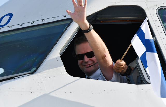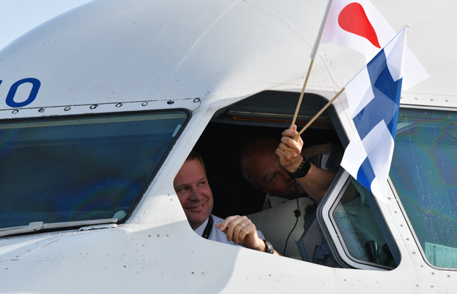 機材はフィンランドを代表するファッションブランド、マリメッコとコラボレーションした特別塗装機(登録番号OH-LTO)が使用された。