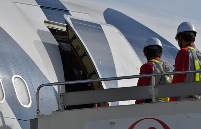 福岡空港に到着しドアが開くフィンエアーの福岡着初便AY75便=16年5月8日 PHOTO: Tadayuki YOSHIKAWA/Aviation Wire