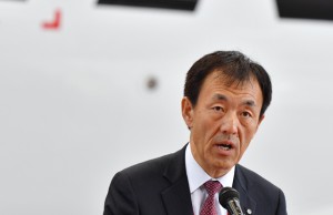 記念式典であいさつするジェイエアの大貫社長=16年5月9日 PHOTO: Tadayuki YOSHIKAWA/Aviation Wire