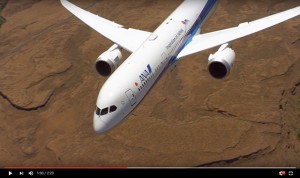 モーゼスレイク上空を飛行するANAの787-9(YouTubeから)