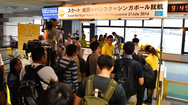 スクートのバンコク経由初便に搭乗する乗客=16年7月21日 PHOTO: Tadayuki YOSHIKAWA/Aviation Wire
