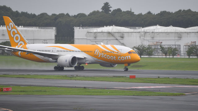 成田へ到着するスクートのバンコク発初便=16年7月21日 PHOTO: Tadayuki YOSHIKAWA/Aviation Wire
