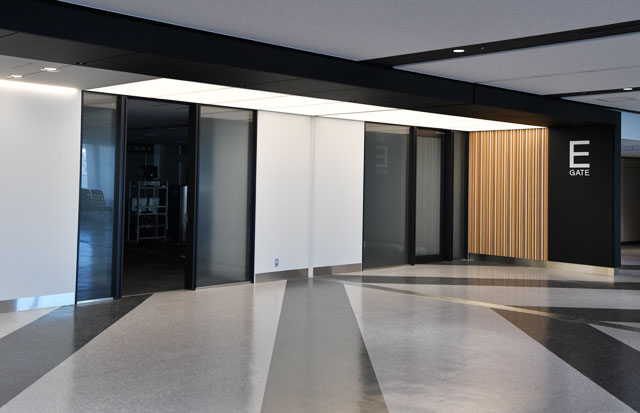 出発口Eの保安検査場を通過すると、目の前には17番搭乗口があり、右側に18番と19番搭乗口が並ぶ。最北に位置する0番搭乗口と比べ、検査場からの距離が短くなり、搭乗口近くの売店で買い物もできるようになった。