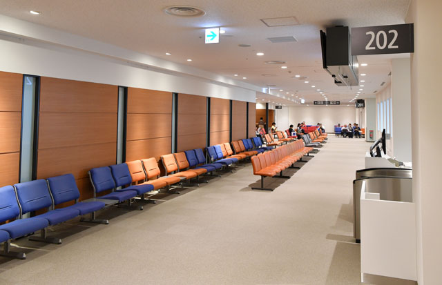 1階にあるバスラウンジには202番(手前)と201番搭乗口がある=16年9月26日 PHOTO: Tadayuki YOSHIKAWA/Aviation Wire