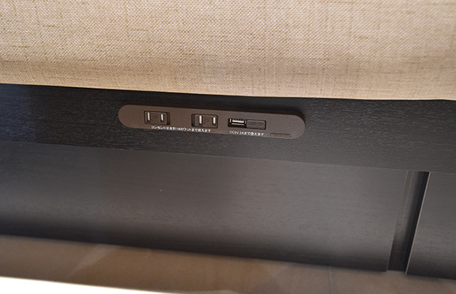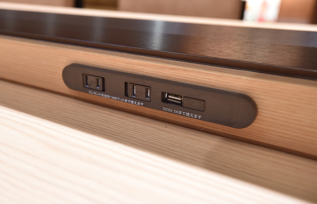 テーブル席に備える電源とUSBプラグ=18年2月27日 PHOTO: Yusuke KOHASE/Aviation Wire