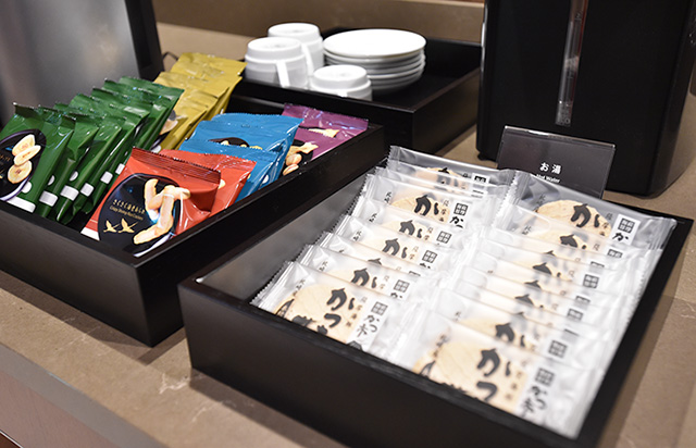 コーヒーは、これまでのインスタントからドリップ式に変更。食事は用意せず、「あられ」などのおつまみを提供する。